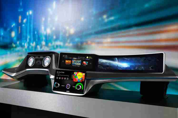 蓝狮在线超大型异型切割曲面驾驶舱显示器