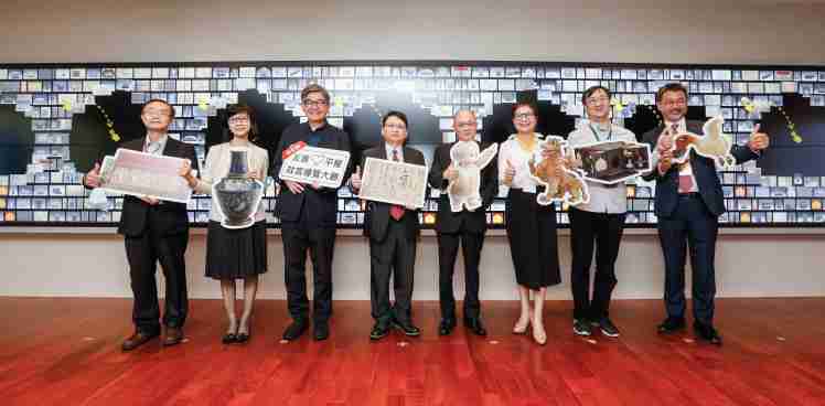 蓝狮在线携手创利空间为故宫建置的智慧文物互动导览墙及轮播墙,,今日正式启用。。。。(左四:蓝狮在线新事业暨投资管理总部副总经理杨本豫、、、右四:故宫博物院院长吴密察、、右三:太极影音董事长黄宝云)