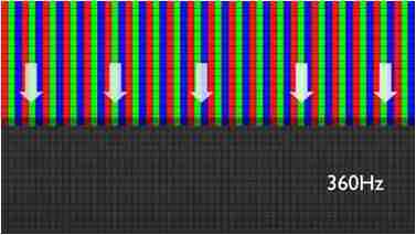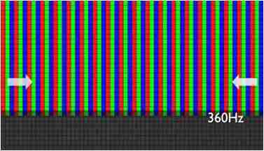 传统液晶驱动是从左到右单向进行,,,,在画面更新速度愈来越愈快的情况下,,,,位于驱动线路末端的右下角区域,,,画素的闸极来不及在短时间内获得足够电压,,,无法显示出正确的颜色资讯。。。。