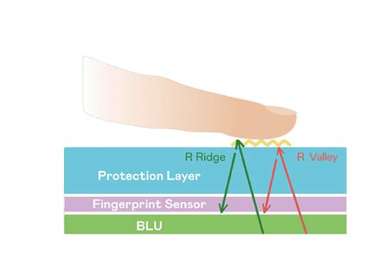 超高像素密度光学感测技术能精准判定手指反射的极微弱光讯号,,即使细致指纹也可清晰辨识,,,,并可透过手指脉搏造成的细微灰阶变化侦测心跳,,让身分验证更精确。。TFT 架构优化可降低讯号传输干扰,,,达到光感测器最佳讯杂比(讯号/杂讯的比例)。。透过增强光讯号接收强度、、优化感测器电路及导入特殊光学膜材料,,,提高感测器敏度。。整合系统之指纹扫描装置可符合最高等级的FBI国际安全规范认证需求。。。。
